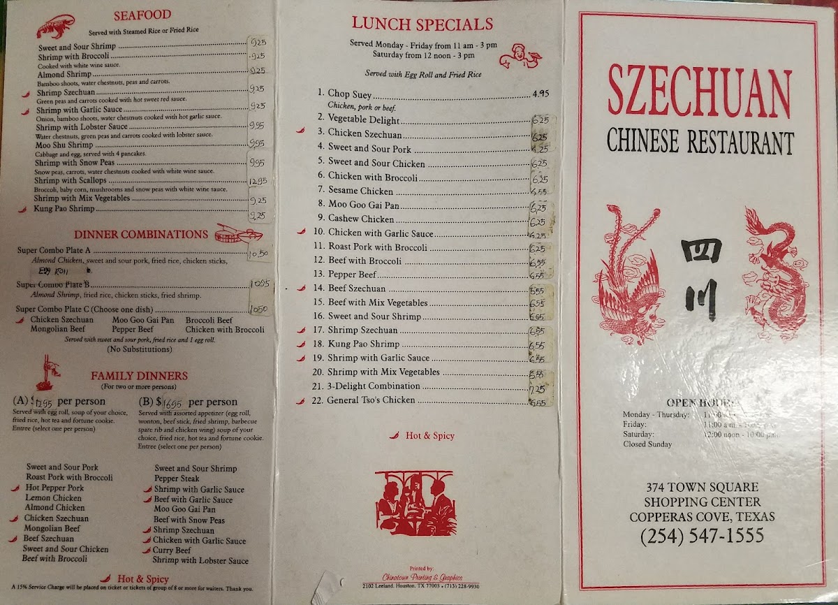 If you're craving bold and vibrant flavors, the Szechuan Chinese Restaurant Menu is where you'll want to be. Located at 374 Town Sq B in Copperas Cove, TX, this spot brings the rich, spicy, and savory tastes of Szechuan cuisine right to your table. From the moment you glance at the menu, you're greeted with an exciting selection of traditional dishes packed with punchy flavors and mouthwatering spices.